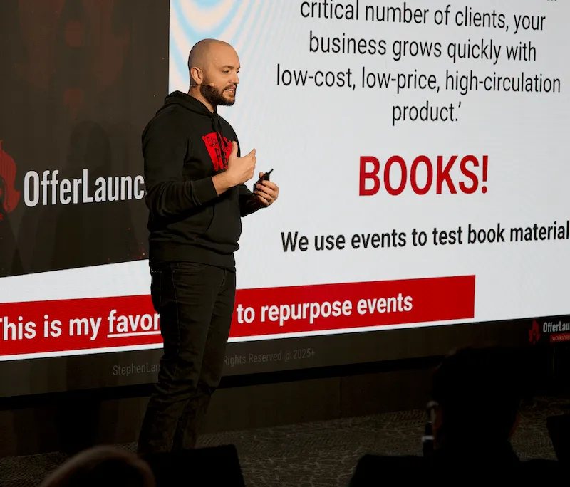 You get our full production stack: AV team, videographers, professional photo, full replays, B-roll, and audience testimonials that become future marketing assets. These are assets that permanently change how the market sees you, designed to create gravity, demand, and credibility that outlive any single launch or trend.